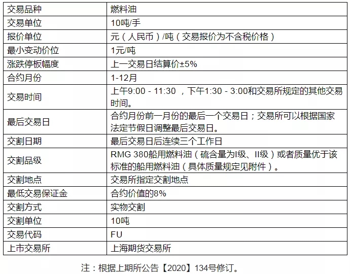 表1 上期所燃料油期货合约