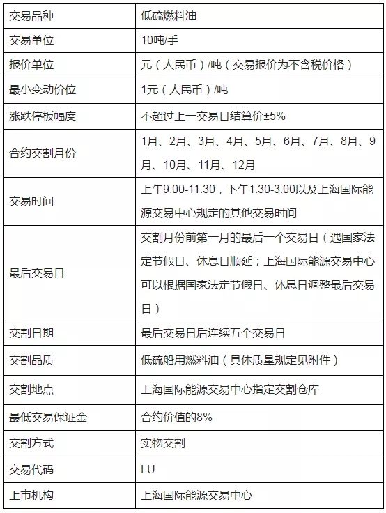 表2 《上海国际能源交易中心低硫燃料油期货标准合约》(征求意见稿)