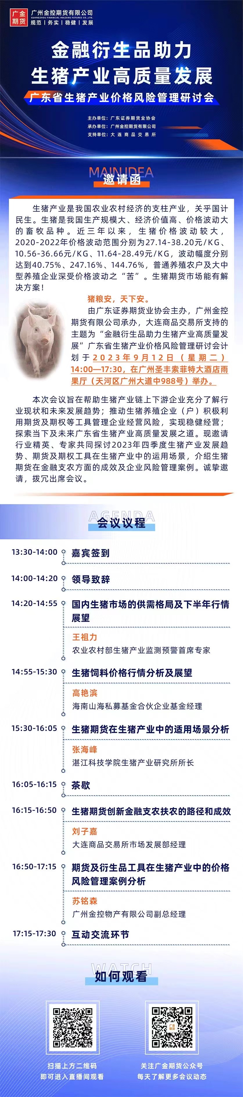 广州金控期货将举办“广东省生猪产业价格风险管理研讨会”