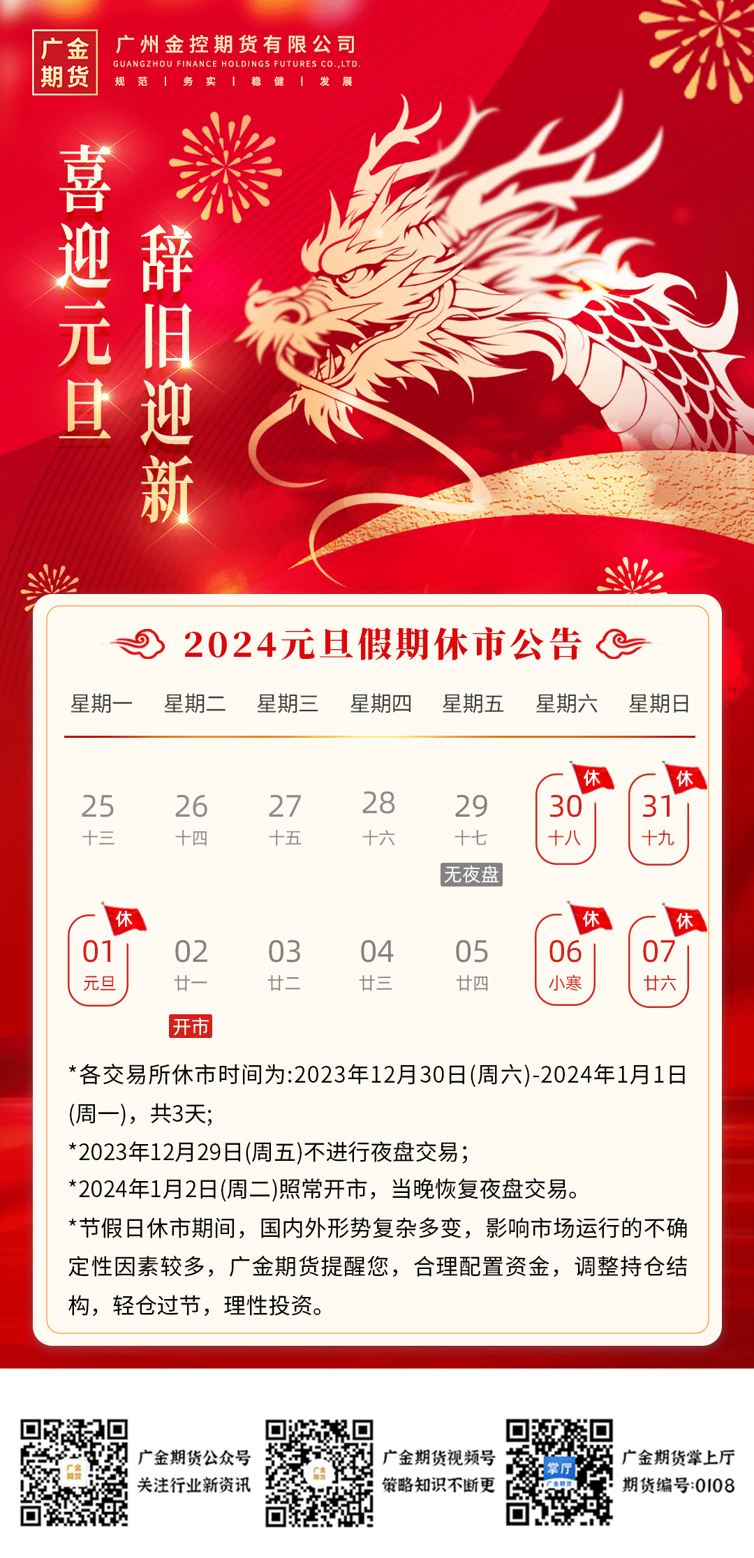 2024年元旦假期休市公告