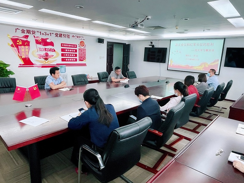 4月20日下午,广金期货在会议室召开主题为《遵义会议和红军长征的胜利》党史教育学习。由支部宣传委员周光领学,总部员工参加学习,学习会上周光同志畅谈新心得,畅论新实践,重温了遵义会议和红军长征的光辉历史。遵义会议是党的历史上一个生死攸关的转折点,开始形成以毛泽东为核心的第一代中央领导集体。在危急关头挽救了党、挽救了红军、挽救了中国革命;在长征的征途上,平均每300米就有一位红军牺牲,长征是一次理想信念的伟大远征,是一次检验真理的伟大远征、是一次开创新局的伟大远征。会上,周光同志结合公司目前面临的处境,要求全体员工,特别是党员骨干在公司困难的时候,要发扬吃苦耐劳、不怕牺牲的“长征精神”。一定要坚守岗位,做好本职工作。公司的困难是暂时的,只有大家同心协力,在集团党委的领导下,公司的明天一定会更加美好。