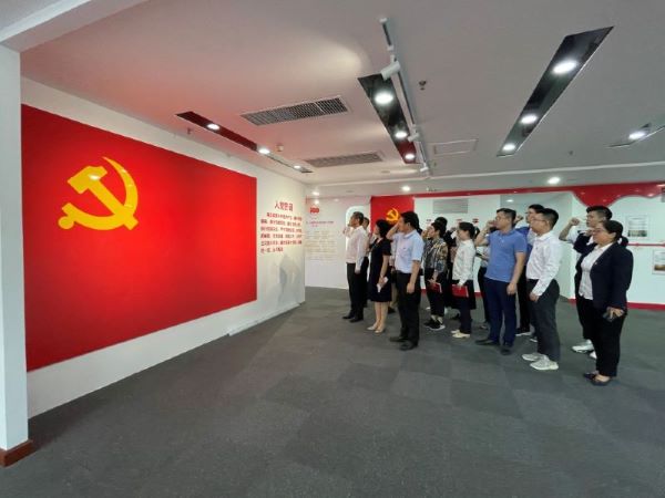 在集团党建基地,全体党员干部驻足在鲜红的党旗下,举起右拳重温当年对党的庄严承诺。“我志愿加入中国共产党,拥护党的纲领,遵守党的章程…为共产主义奋斗终身,随时准备为党和人民牺牲一切,永不叛党!”铮铮誓言回响在党建基地四周。