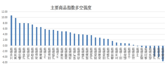 商品市场,从下图可以看出,近期多方势力持续增长,CRB指数由弱转强。其中有色、黑色系继续保持强势,油脂、能化品种转强明显,黄金、白银、白糖以及棉花继续维持弱势局面。虽然商品整体偏强,但是短期升幅较大,或有调整的要求。操作上,谨慎追高,今日关注棕油、豆粕的做多机会。